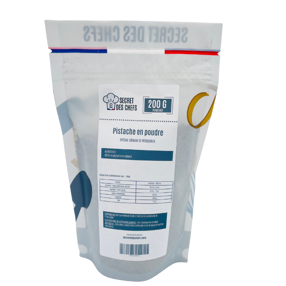 Cette poudre de pistache est issue de pistaches 100 % naturelles, finement broyées pour un usage optimal en pâtisserie. Grâce à sa texture homogène et son arôme intense, elle s’intègre parfaitement dans les biscuits moelleux, dacquoises, pâtes sucrées, financiers, macarons ou entremets. Sa couleur verte apporte aussi une touche visuelle élégante à vos préparations. À la différence de certaines poudres trop grasses ou irrégulières, celle-ci offre une excellente tenue à la cuisson et évite les pâtes lourdes ou huileuses.