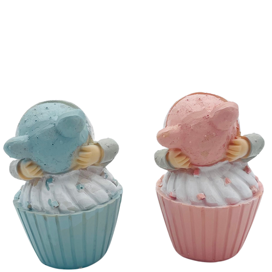 Figurines Bébé Muffin Rose et Bleu, 7.5x5.3 cm
