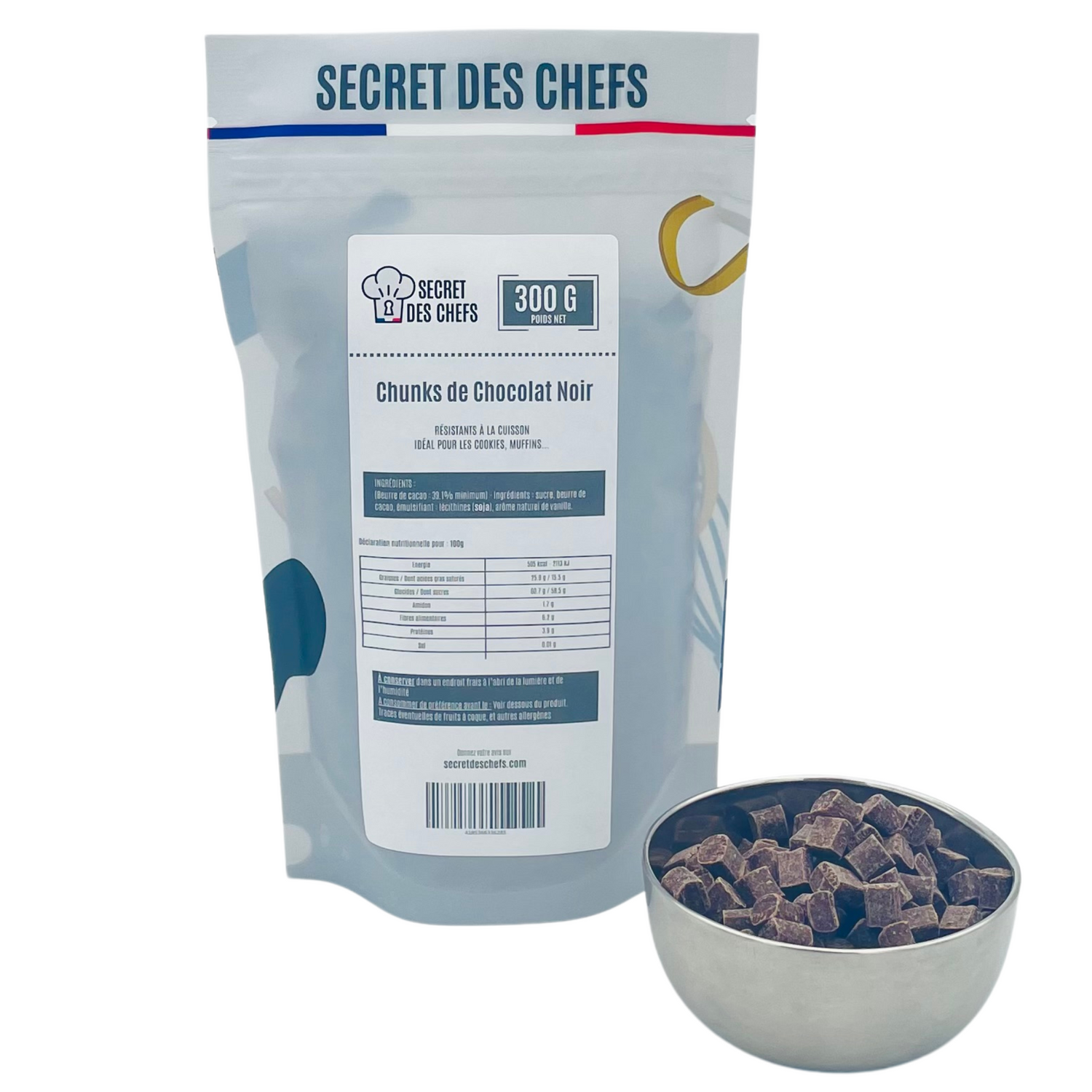 Ces chunks de chocolat noir Secret des Chefs sont l’ingrédient choisi pour des pâtisseries au goût intense et à la texture fondante. Parfaits pour la cuisson, ils gardent leur forme tout en libérant leur arôme puissant à cœur.