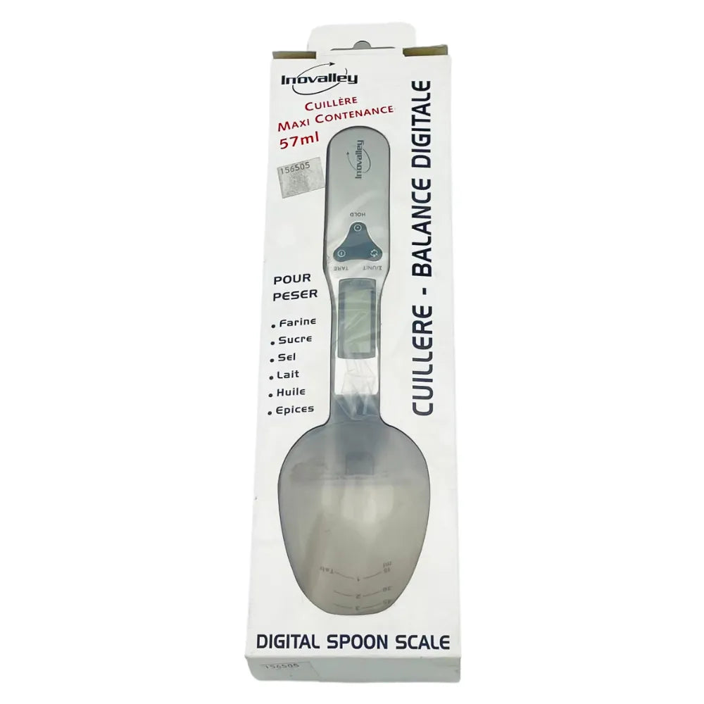 Cuillère avec balance digitale intégrée, idéale pour mesurer précisément les ingrédients secs et liquides jusqu'à 300 grammes.