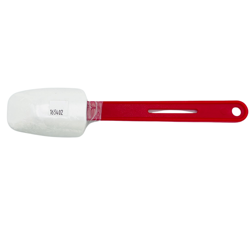 Cette cuillère en silicone est conçue pour résister à des températures élevées allant jusqu'à 316°C, ce qui la rend parfaite pour une utilisation en cuisine, notamment pour mélanger des aliments chauds. Sa longueur permet une prise en main confortable et sécurisée. Le manche en plastique rouge est ergonomique et dispose d'un trou de suspension pour un rangement facile.