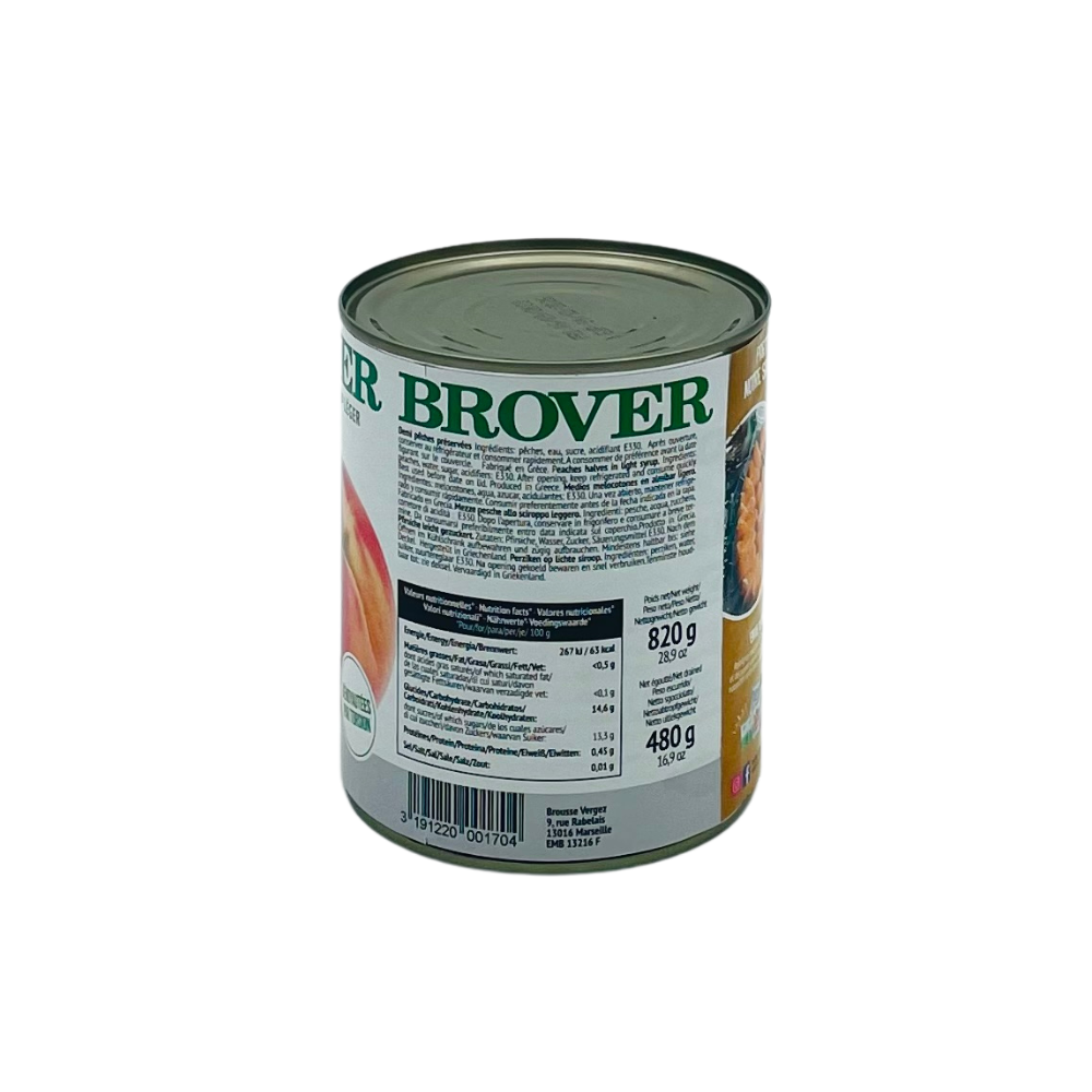 Demi-pêches au sirop léger Brover, 820 g