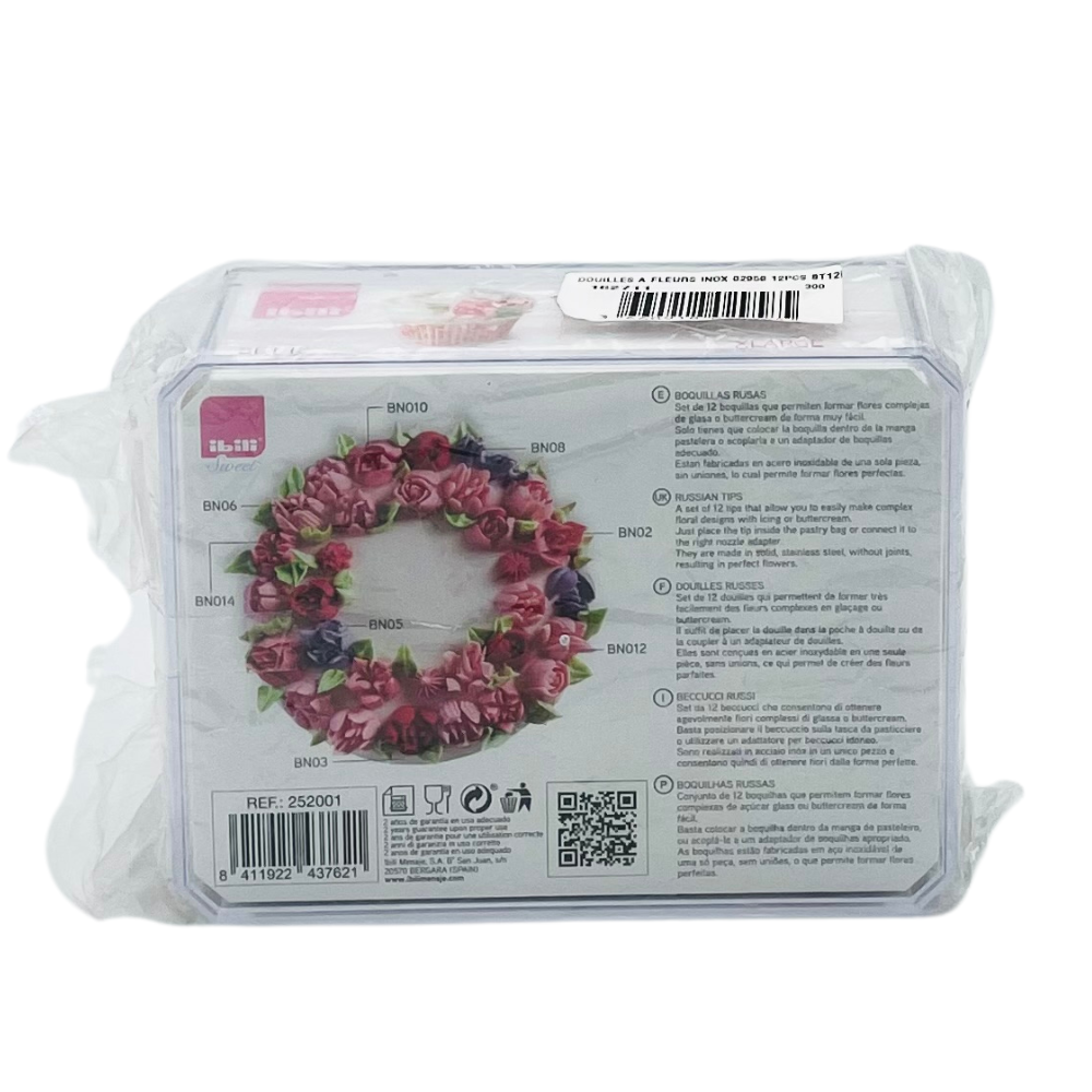 Set de 12 douilles à fleurs en acier inoxydable, parfait pour réaliser des décorations florales détaillées sur vos pâtisseries.