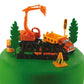 Kit complet de décoration d'anniversaire avec des figurines de chantier, parfait pour un gâteau festif.