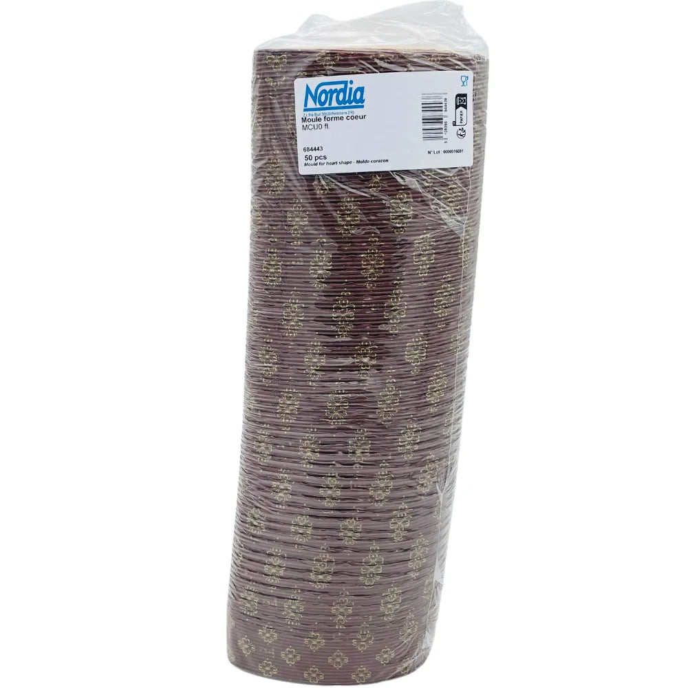 Les moules en papier en forme de cœur de 120x35mm de la marque Nordia sont parfaits pour réaliser des créations pâtissières romantiques et élégantes. Fabriqués en papier de haute qualité, ces moules sont résistants à la chaleur et garantissent une cuisson homogène. Leur motif élégant ajoute une touche raffinée à vos présentations culinaires. Compostables et écologiques, ces moules sont une excellente alternative aux moules en silicone ou en aluminium. Chaque pack contient 50 pièces, vous permettant de créer de délicieux desserts pour toutes les occasions spéciales.