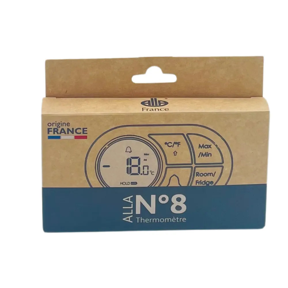Ce thermomètre électronique à sonde de la marque ALLA, fabriqué en France, est idéal pour surveiller la température de votre réfrigérateur ou de vos pièces. Il offre une précision de ±0,5°C et est équipé d'un écran rétroéclairé pour une lecture facile.
