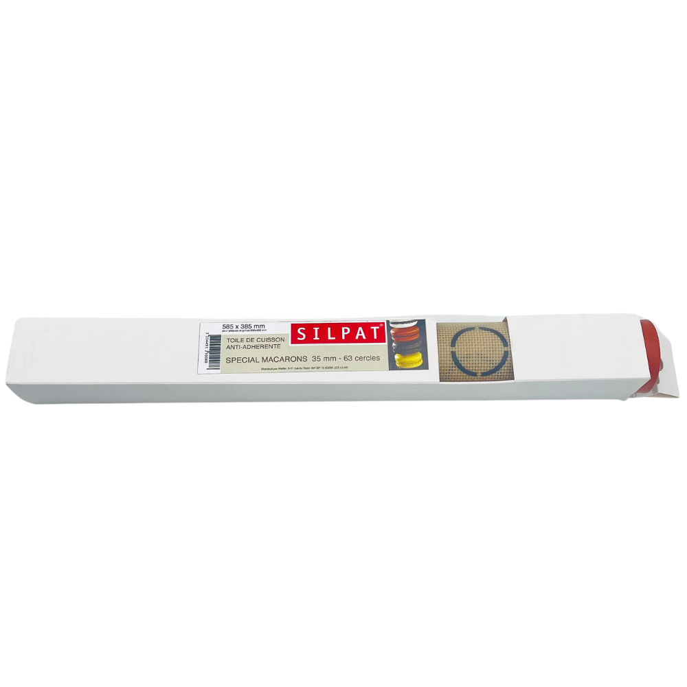 Toile de cuisson antiadhérente Silpat, spécialement conçue pour la réalisation de macarons avec 63 cercles de 35 mm.